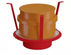 Противопожарная муфта представляет собой металлический корпус с огнезащитным терморасширяющимся материалом, муфтовым соединением для корпуса трапа из ПВХ или ABS-пластика, тремя поддерживающими скобами (крепежными уголками) и звукоизолирующей манжетой, расположенными по окружности металлического корпуса.