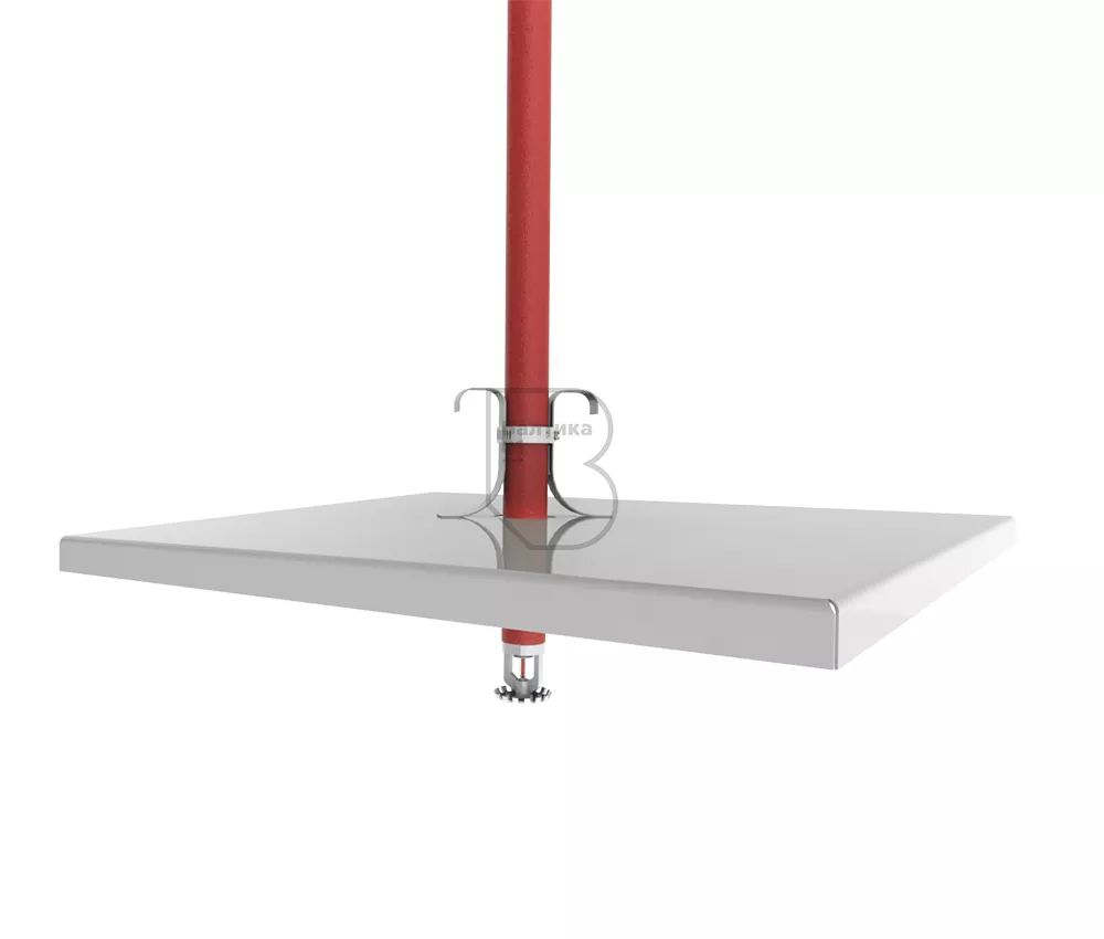 Квадратные экраны устанавливаются на уже смонтированные оросители, установленные оросителем вниз. Экран через отверстие в центре надевается на ороситель и при помощи имеющихся лепестков, которые необходимо предварительно отогнуть, а также червячного хомута (входит в комплект поставки) крепится к трубе СП. Для надежности монтажа лепестки необходимо отогнуть на 180 градусов поверх хомута.